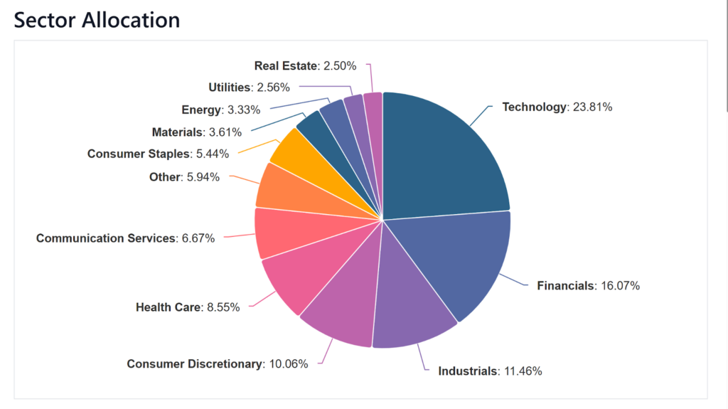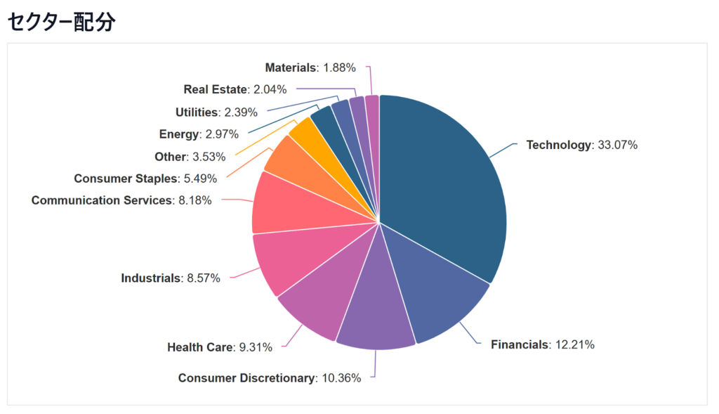 - 構成銘柄・比率:S&P500種指数の全構成銘柄に投資しており、四半期ごとに時価総額加重平均を用いて保有銘柄のウェイトを算定し、リバランスする。
