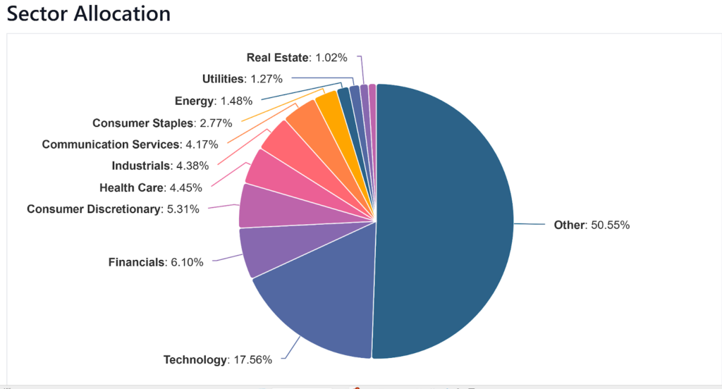 - 保有銘柄数は568銘柄。特徴としては、神7が構成上位にいない。